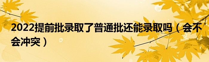 大家好,小高來為大家解答以上問題。2022提前批錄取了普通批還能錄取嗎,會不會沖突很多人還不知道,現(xiàn)在讓我們一起來看看吧!