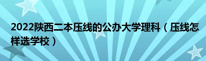 大家好,小高來為大家解答以上問題。2022陜西二本壓線的公辦大學(xué)理科,壓線怎樣選學(xué)校很多人還不知道,現(xiàn)在讓我們一起來看看吧!