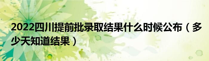 大家好,小高來(lái)為大家解答以上問(wèn)題。2022四川提前批錄取結(jié)果什么時(shí)候公布,多少天知道結(jié)果很多人還不知道,現(xiàn)在讓我們一起來(lái)看看吧!