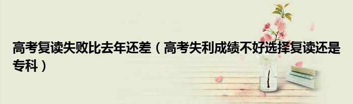 大家好,小高來(lái)為大家解答以上問(wèn)題。高考復(fù)讀失敗比去年還差,高考失利成績(jī)不好選擇復(fù)讀還是??坪芏嗳诉€不知道,現(xiàn)在讓我們一起來(lái)看看吧!