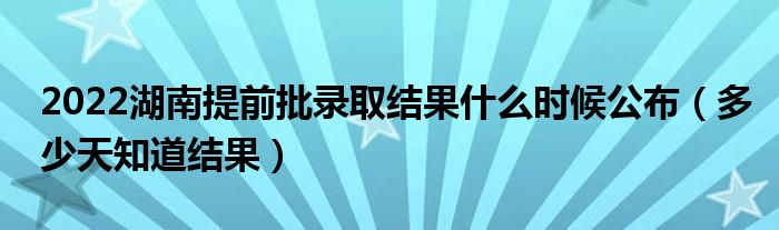 一、2022湖南提前批錄取時間