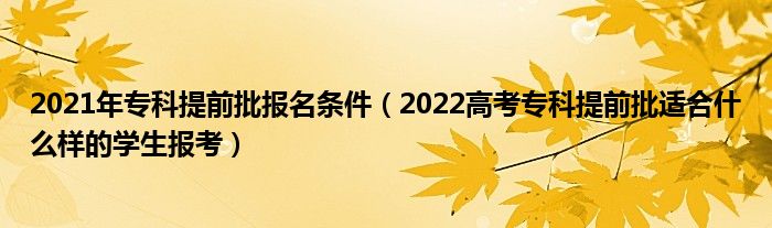 大家好,小高來為大家解答以上問題。2021年專科提前批報(bào)名條件,2022高考??铺崆芭m合什么樣的學(xué)生報(bào)考很多人還不知道,現(xiàn)在讓我們一起來看看吧!