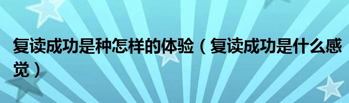 大家好,小高來為大家解答以上問題。復(fù)讀成功是種怎樣的體驗,復(fù)讀成功是什么感覺很多人還不知道,現(xiàn)在讓我們一起來看看吧!