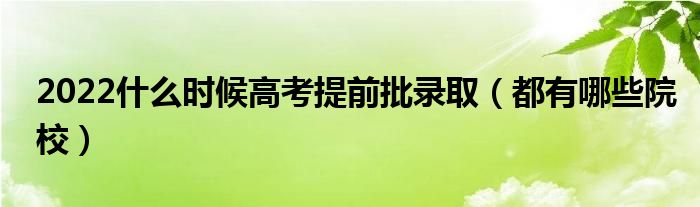 大家好,小高來(lái)為大家解答以上問(wèn)題。2022什么時(shí)候高考提前批錄取,都有哪些院校很多人還不知道,現(xiàn)在讓我們一起來(lái)看看吧!
