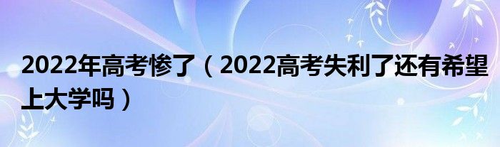 大家好,小高來(lái)為大家解答以上問(wèn)題。2022年高考慘了,2022高考失利了還有希望上大學(xué)嗎很多人還不知道,現(xiàn)在讓我們一起來(lái)看看吧!