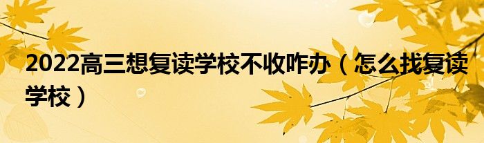 大家好,小高來為大家解答以上問題。2022高三想復(fù)讀學(xué)校不收咋辦,怎么找復(fù)讀學(xué)校很多人還不知道,現(xiàn)在讓我們一起來看看吧!