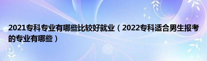 大家好,小高來為大家解答以上問題。2021??茖I(yè)有哪些比較好就業(yè),2022??七m合男生報考的專業(yè)有哪些很多人還不知道,現(xiàn)在讓我們一起來看看吧!