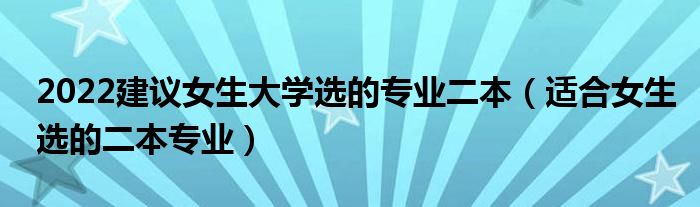 大家好,小高來為大家解答以上問題。2022建議女生大學(xué)選的專業(yè)二本,適合女生選的二本專業(yè)很多人還不知道,現(xiàn)在讓我們一起來看看吧!