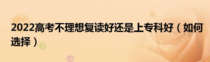 大家好,小高來為大家解答以上問題。2022高考不理想復讀好還是上??坪?,如何選擇很多人還不知道,現(xiàn)在讓我們一起來看看吧!
