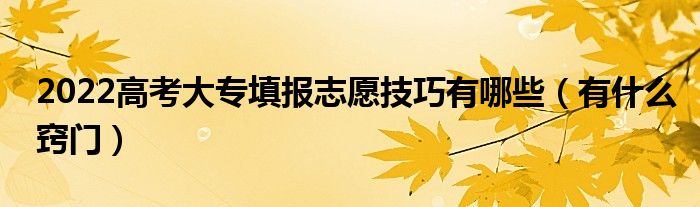 大家好,小高來(lái)為大家解答以上問(wèn)題。2022高考大專填報(bào)志愿技巧有哪些,有什么竅門很多人還不知道,現(xiàn)在讓我們一起來(lái)看看吧!