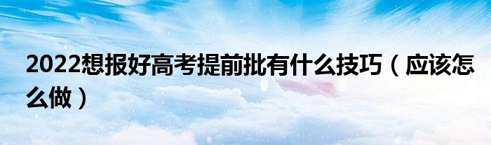大家好,小高來(lái)為大家解答以上問(wèn)題。2022想報(bào)好高考提前批有什么技巧,應(yīng)該怎么做很多人還不知道,現(xiàn)在讓我們一起來(lái)看看吧!