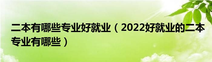 大家好,小高來(lái)為大家解答以上問(wèn)題。二本有哪些專業(yè)好就業(yè),2022好就業(yè)的二本專業(yè)有哪些很多人還不知道,現(xiàn)在讓我們一起來(lái)看看吧!