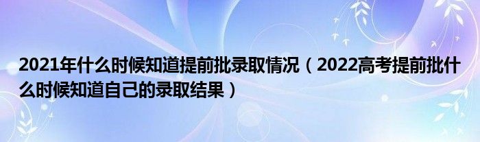 大家好,小高來為大家解答以上問題。2021年什么時候知道提前批錄取情況,2022高考提前批什么時候知道自己的錄取結(jié)果很多人還不知道,現(xiàn)在讓我們一起來看看吧!