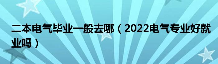 大家好,小高來為大家解答以上問題。二本電氣畢業(yè)一般去哪,2022電氣專業(yè)好就業(yè)嗎很多人還不知道,現(xiàn)在讓我們一起來看看吧!