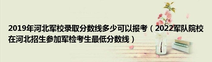 大家好,小高來為大家解答以上問題。2019年河北軍校錄取分?jǐn)?shù)線多少可以報(bào)考,2022軍隊(duì)院校在河北招生參加軍檢考生最低分?jǐn)?shù)線很多人還不知道,現(xiàn)在讓我們一起來看看吧!