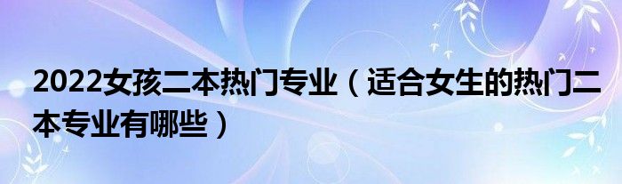 大家好,小高來為大家解答以上問題。2022女孩二本熱門專業(yè),適合女生的熱門二本專業(yè)有哪些很多人還不知道,現(xiàn)在讓我們一起來看看吧!