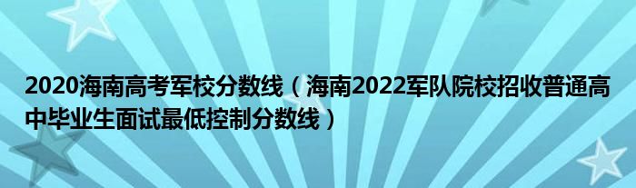 大家好,小高來(lái)為大家解答以上問(wèn)題。2020海南高考軍校分?jǐn)?shù)線,海南2022軍隊(duì)院校招收普通高中畢業(yè)生面試最低控制分?jǐn)?shù)線很多人還不知道,現(xiàn)在讓我們一起來(lái)看看吧!