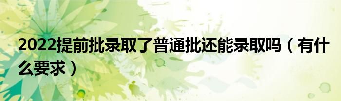 大家好,小高來為大家解答以上問題。2022提前批錄取了普通批還能錄取嗎,有什么要求很多人還不知道,現(xiàn)在讓我們一起來看看吧!