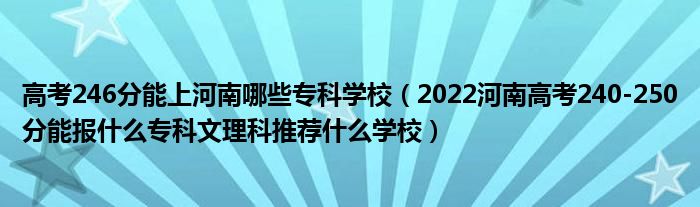 大家好,小高來為大家解答以上問題。高考246分能上河南哪些??茖W(xué)校,2022河南高考240-250分能報(bào)什么專科文理科推薦什么學(xué)校很多人還不知道,現(xiàn)在讓我們一起來看看吧!
