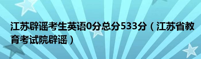 大家好,小高來為大家解答以上問題。江蘇辟謠考生英語0分總分533分,江蘇省教育考試院辟謠很多人還不知道,現(xiàn)在讓我們一起來看看吧!