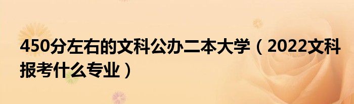 大家好,小高來(lái)為大家解答以上問(wèn)題。450分左右的文科公辦二本大學(xué),2022文科報(bào)考什么專業(yè)很多人還不知道,現(xiàn)在讓我們一起來(lái)看看吧!