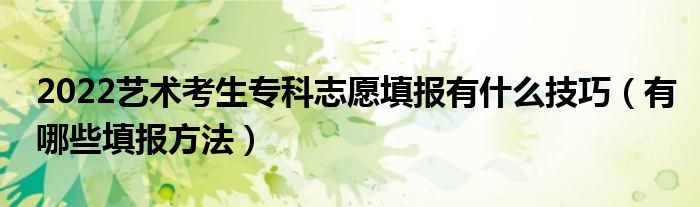 大家好,小高來(lái)為大家解答以上問(wèn)題。2022藝術(shù)考生專科志愿填報(bào)有什么技巧,有哪些填報(bào)方法很多人還不知道,現(xiàn)在讓我們一起來(lái)看看吧!