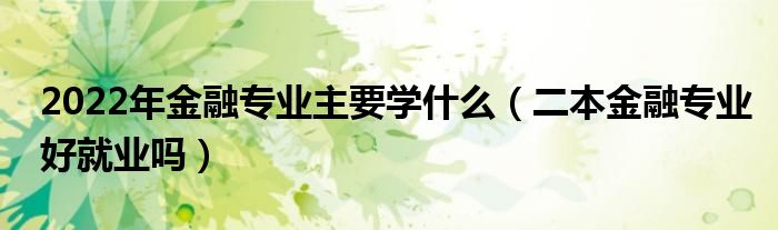 大家好,小高來為大家解答以上問題。2022年金融專業(yè)主要學(xué)什么,二本金融專業(yè)好就業(yè)嗎很多人還不知道,現(xiàn)在讓我們一起來看看吧!