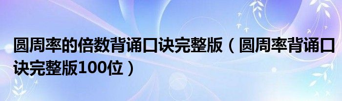 大家好,小高來為大家解答以上問題。圓周率的倍數(shù)背誦口訣完整版,圓周率背誦口訣完整版100位很多人還不知道,現(xiàn)在讓我們一起來看看吧!