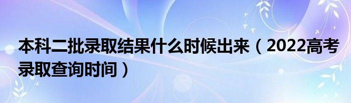 大家好,小高來為大家解答以上問題。本科二批錄取結(jié)果什么時候出來,2022高考錄取查詢時間很多人還不知道,現(xiàn)在讓我們一起來看看吧!