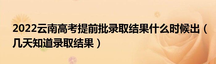 大家好,小高來為大家解答以上問題。2022云南高考提前批錄取結(jié)果什么時(shí)候出,幾天知道錄取結(jié)果很多人還不知道,現(xiàn)在讓我們一起來看看吧!