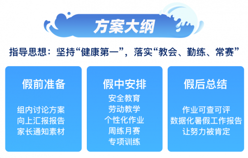 作為“雙減”后的第二個暑假,對學(xué)校的暑期體育工作要求更高了。運動鍛煉、知識學(xué)習(xí)、安全意識、家庭教育、興趣培養(yǎng)等,這些都是學(xué)校暑期工作安排要涵蓋的重點。然而如何圍繞這些重點,設(shè)計科學(xué)、全面的多元化的暑假工作計劃,也成為困擾很多老師的難題。