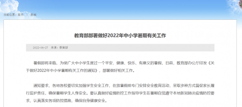 全國各省市教育廳積極響應(yīng),陸續(xù)發(fā)布中小學(xué)暑假有關(guān)工作通知。其中: