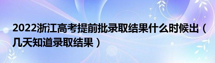 大家好,小高來為大家解答以上問題。2022浙江高考提前批錄取結(jié)果什么時候出,幾天知道錄取結(jié)果很多人還不知道,現(xiàn)在讓我們一起來看看吧!