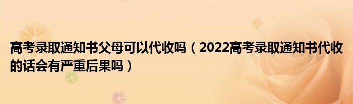 大家好,小高來(lái)為大家解答以上問(wèn)題。高考錄取通知書(shū)父母可以代收嗎,2022高考錄取通知書(shū)代收的話會(huì)有嚴(yán)重后果嗎很多人還不知道,現(xiàn)在讓我們一起來(lái)看看吧!