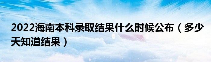 大家好,小高來為大家解答以上問題。2022海南本科錄取結(jié)果什么時候公布,多少天知道結(jié)果很多人還不知道,現(xiàn)在讓我們一起來看看吧!