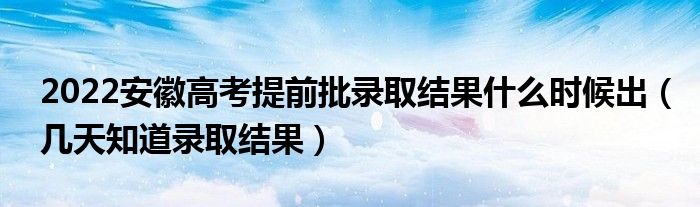 大家好,小高來為大家解答以上問題。2022安徽高考提前批錄取結(jié)果什么時(shí)候出,幾天知道錄取結(jié)果很多人還不知道,現(xiàn)在讓我們一起來看看吧!