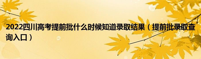 大家好,小高來為大家解答以上問題。2022四川高考提前批什么時候知道錄取結果,提前批錄取查詢入口很多人還不知道,現在讓我們一起來看看吧!