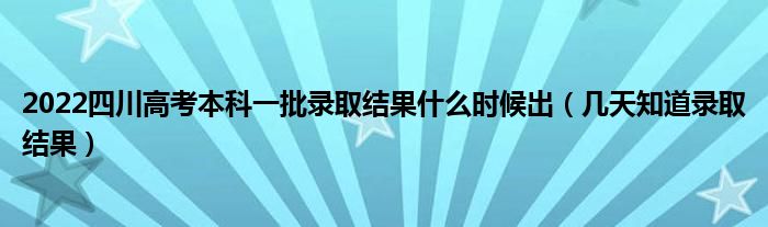 大家好,小高來為大家解答以上問題。2022四川高考本科一批錄取結(jié)果什么時(shí)候出,幾天知道錄取結(jié)果很多人還不知道,現(xiàn)在讓我們一起來看看吧!