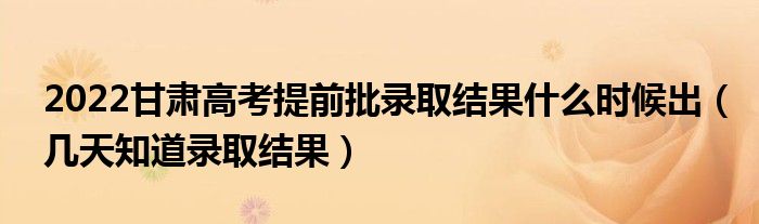 大家好,小高來為大家解答以上問題。2022甘肅高考提前批錄取結(jié)果什么時候出,幾天知道錄取結(jié)果很多人還不知道,現(xiàn)在讓我們一起來看看吧!