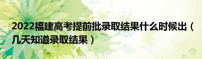 一、2022福建高考提前批錄取結(jié)果幾號(hào)出