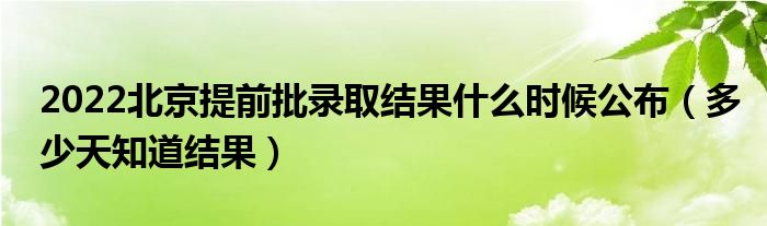 大家好,小高來為大家解答以上問題。2022北京提前批錄取結(jié)果什么時候公布,多少天知道結(jié)果很多人還不知道,現(xiàn)在讓我們一起來看看吧!