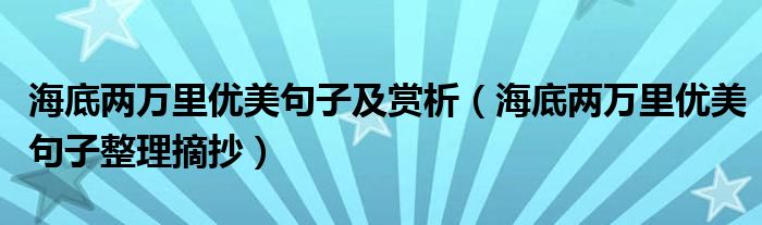 大家好,小高來為大家解答以上問題。海底兩萬里優(yōu)美句子及賞析,海底兩萬里優(yōu)美句子整理摘抄很多人還不知道,現(xiàn)在讓我們一起來看看吧!