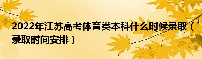 大家好,小高來為大家解答以上問題。2022年江蘇高考體育類本科什么時(shí)候錄取,錄取時(shí)間安排很多人還不知道,現(xiàn)在讓我們一起來看看吧!