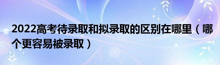 大家好,小高來(lái)為大家解答以上問(wèn)題。2022高考待錄取和擬錄取的區(qū)別在哪里,哪個(gè)更容易被錄取很多人還不知道,現(xiàn)在讓我們一起來(lái)看看吧!