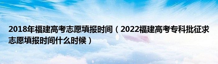 大家好,小高來(lái)為大家解答以上問題。2018年福建高考志愿填報(bào)時(shí)間,2022福建高考??婆髑笾驹柑顖?bào)時(shí)間什么時(shí)候很多人還不知道,現(xiàn)在讓我們一起來(lái)看看吧!