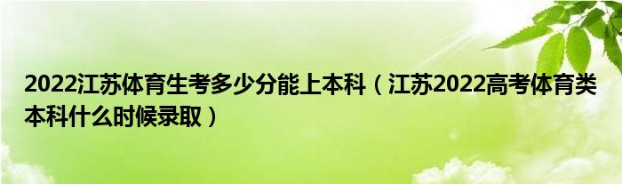 大家好,小高來(lái)為大家解答以上問(wèn)題。2022江蘇體育生考多少分能上本科,江蘇2022高考體育類本科什么時(shí)候錄取很多人還不知道,現(xiàn)在讓我們一起來(lái)看看吧!