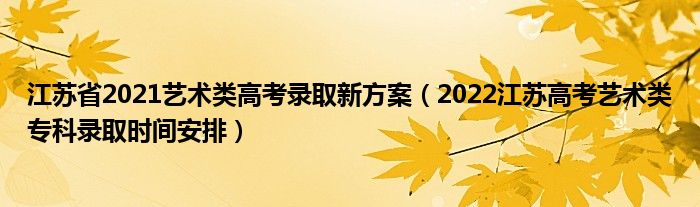大家好,小高來(lái)為大家解答以上問(wèn)題。江蘇省2021藝術(shù)類(lèi)高考錄取新方案,2022江蘇高考藝術(shù)類(lèi)專(zhuān)科錄取時(shí)間安排很多人還不知道,現(xiàn)在讓我們一起來(lái)看看吧!