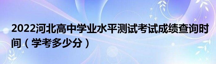 大家好,小高來為大家解答以上問題。2022河北高中學業(yè)水平測試考試成績查詢時間,學考多少分很多人還不知道,現(xiàn)在讓我們一起來看看吧!