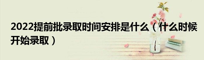 大家好,小高來為大家解答以上問題。2022提前批錄取時(shí)間安排是什么,什么時(shí)候開始錄取很多人還不知道,現(xiàn)在讓我們一起來看看吧!