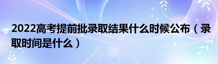 大家好,小高來為大家解答以上問題。2022高考提前批錄取結果什么時候公布,錄取時間是什么很多人還不知道,現(xiàn)在讓我們一起來看看吧!